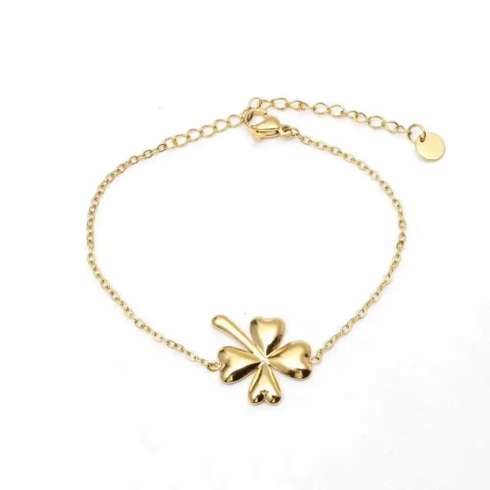 Modeschmuck - vergoldetes Edelstahl Boho Armband mit großem Kleeblatt
