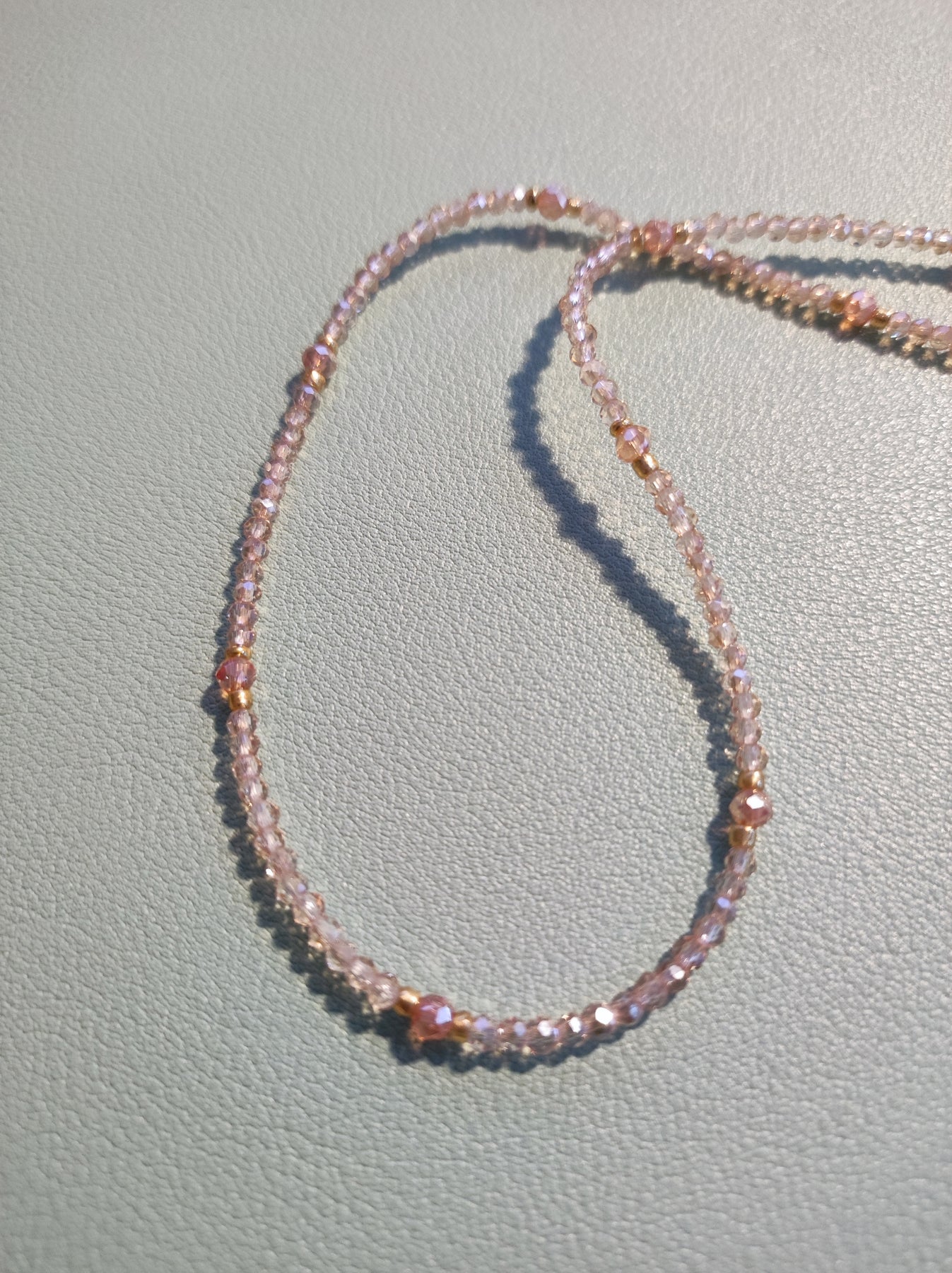 Modeschmuck - vergoldetes Edelstahl, Kette mit feinen Perlchen in rose beige gold