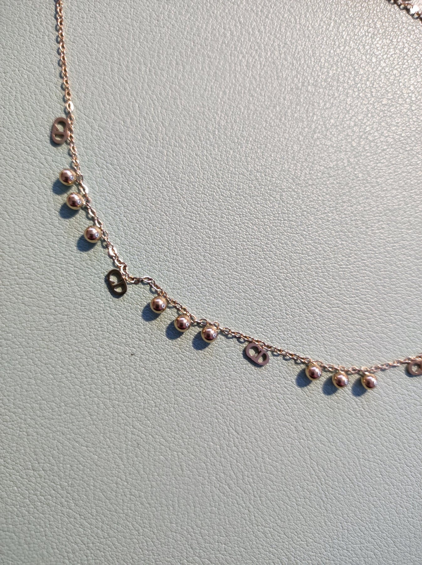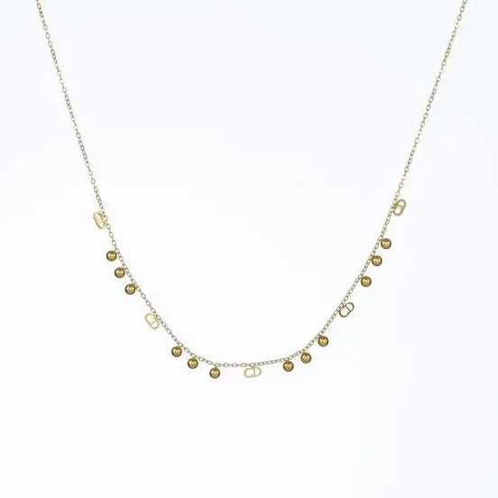 Modeschmuck - vergoldetes Edelstahl, Kette mit feinen CD-Monogram Elementen und goldenen Perlchen