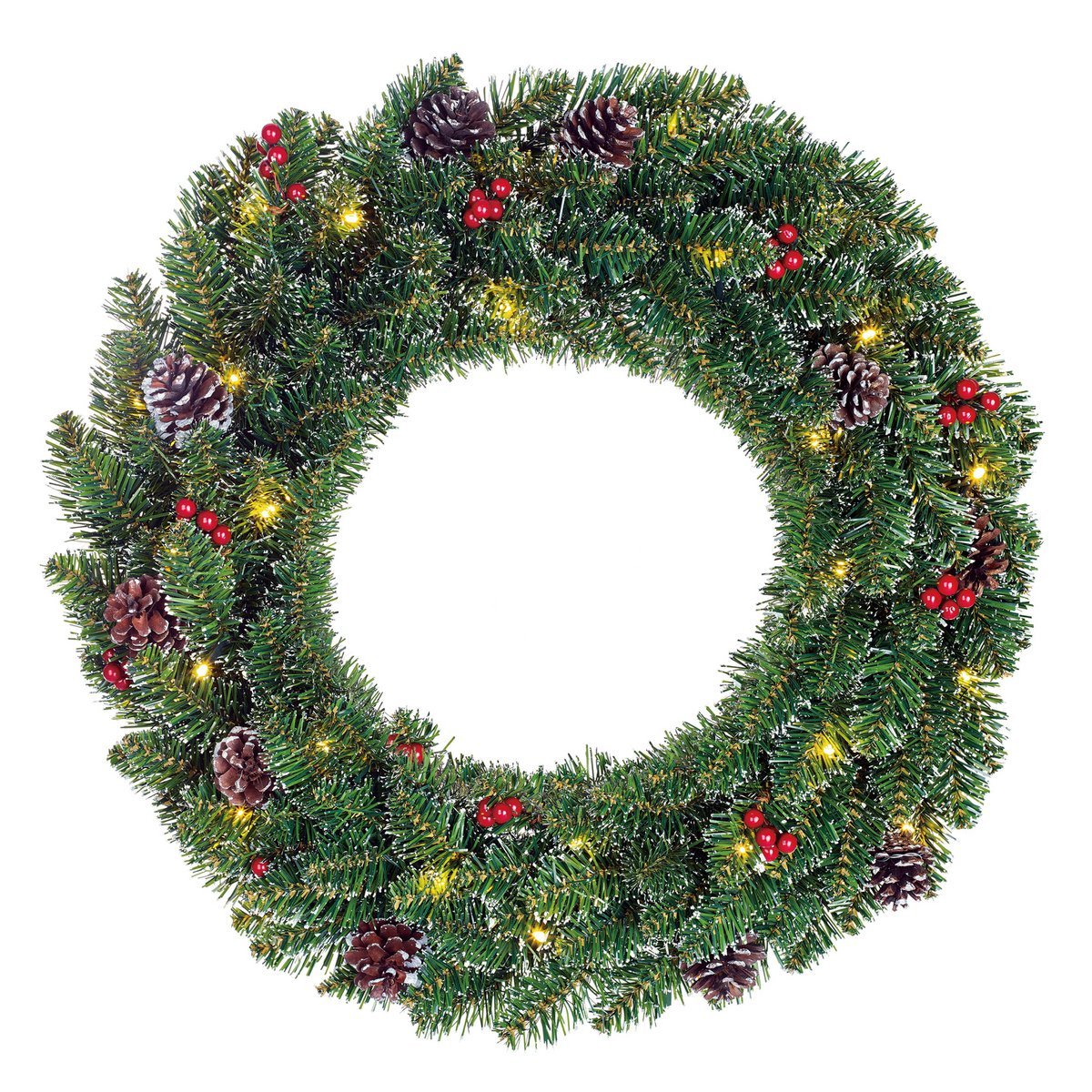 Creston Weihnachtskranz, Weihnachtskranz LED, Kranz Ø 60 cm, grüner Kranz, Kranz mit Lichtern, beleuchteter Weihnachtskranz, Deko Kranz Weihnachten, Türkranz LED, Kranz mit Zapfen & Beeren, festliche Kranzdekoration