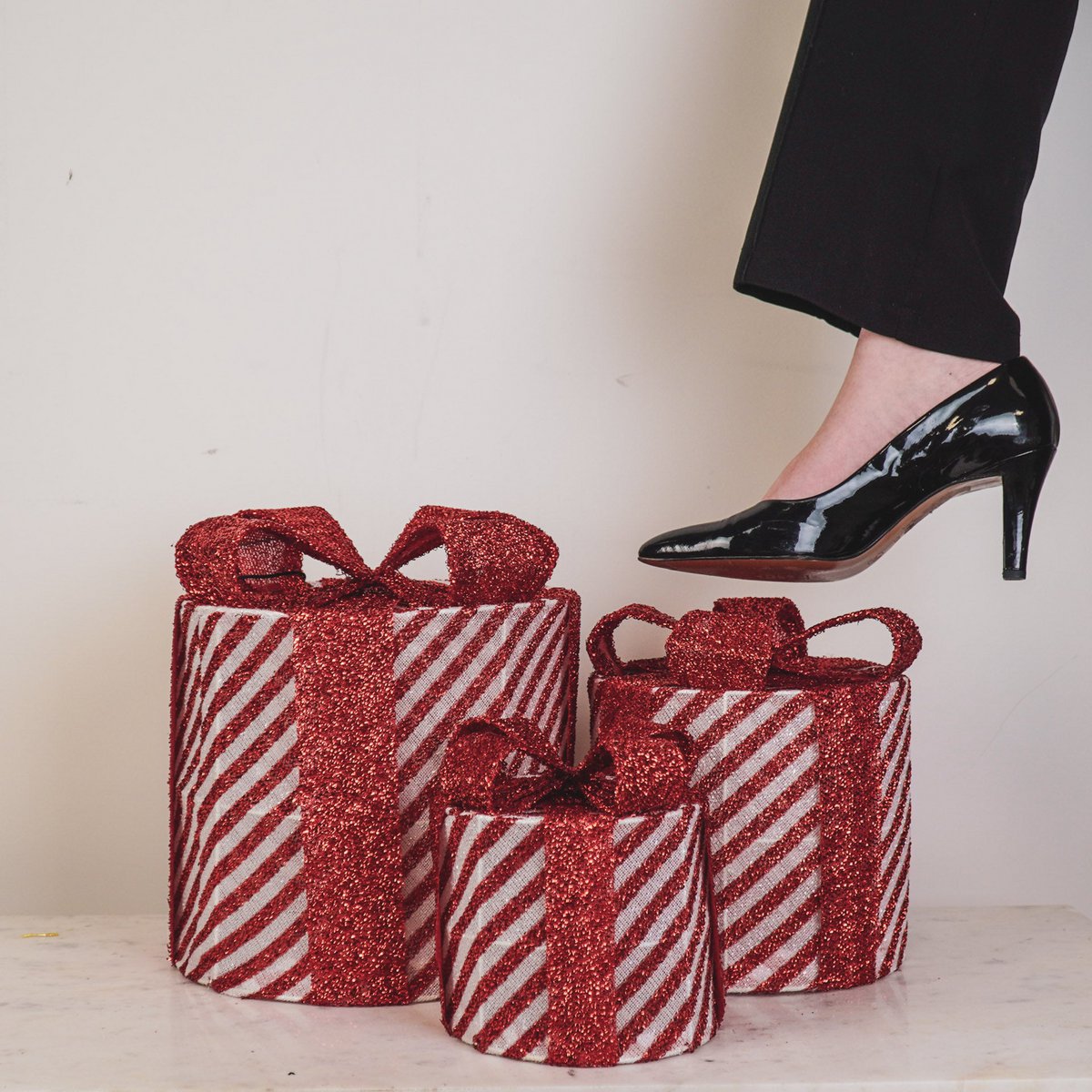LED-Weihnachtsgeschenke – 3er-Set / rund – Rot/Weiß – 15/20/25 cm