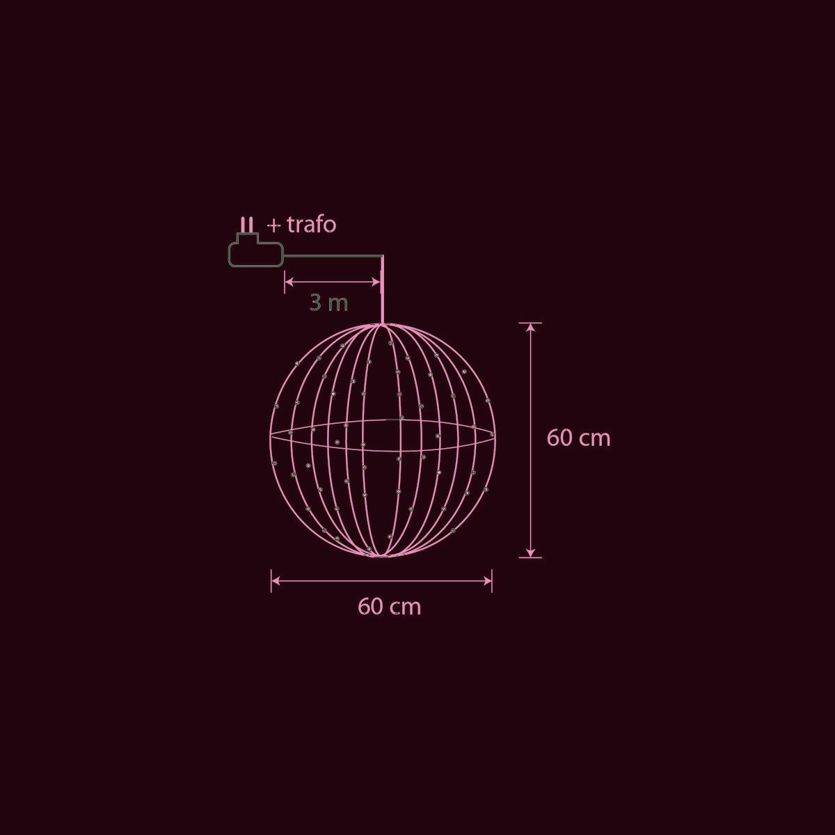 Die Dekokugel hat einen Durchmesser von 60 cm.