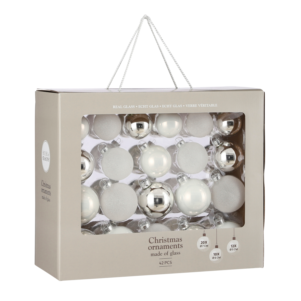 Weihnachtskugeln Set - 42 Stück - Ø7 cm - Glas - Weiß