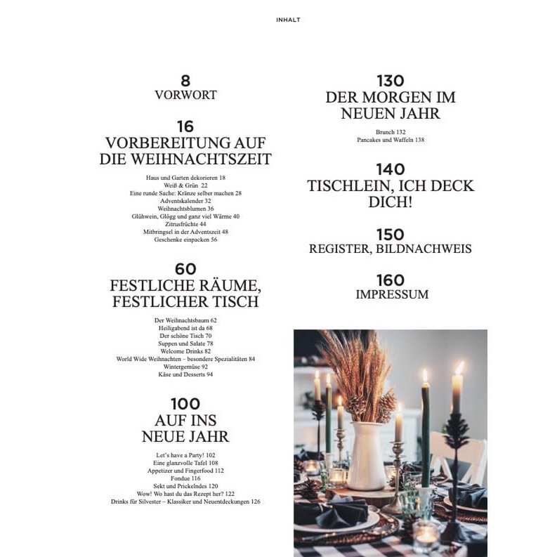 Heißen Kakao trinken, während die erste Adventskerze brennt, Weihnachten mit der Familie, ein entspannter Spaziergang an Neujahr: Die winterliche Weihnachtszeit bietet viele schöne Momente, die uns in besinnlicher Stimmung zusammenkommen lassen. Als perfekter Begleiter für die gemütlichste Zeit des Jahres, präsentiert dieses Buch die köstlichsten Winterrezepte, die kreativsten Dekorations-Ideen und die schönsten Tipps und Anregungen für die Winterzeit – ein Inspirationsquelle für die ersten kalten Wintertage bis zum Weihnachtsabend und darüber hinaus.