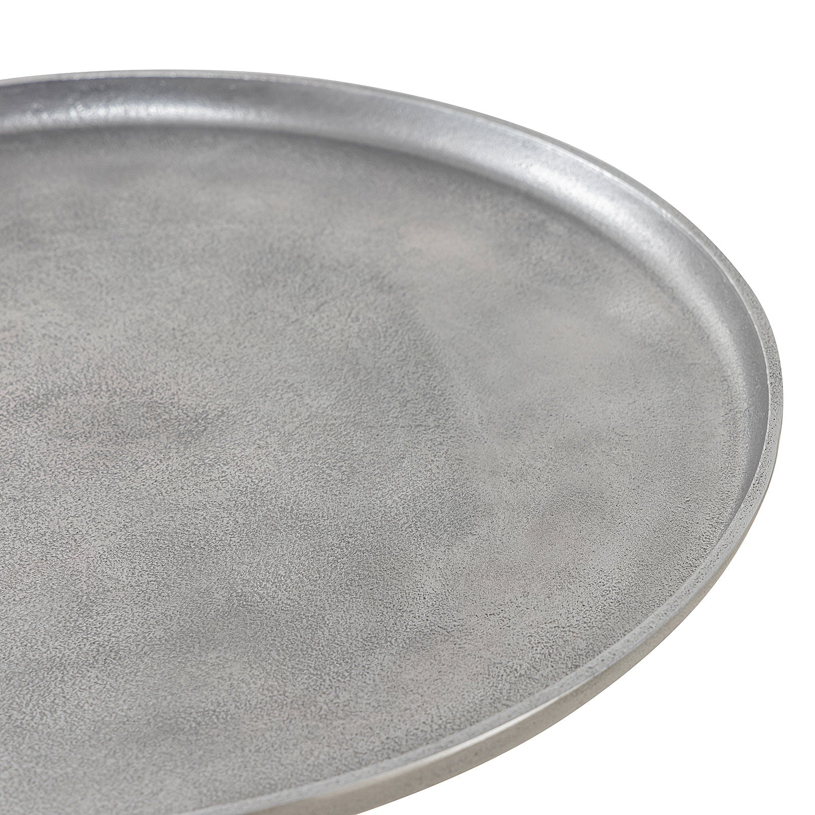 Der hübsche Beistelltisch Adlon ist die perfekte Ergänzung für Ihren Wohnbereich. Der Tisch besteht aus hochwertigem Aluminium und ist in silber lieferbar. Er ist als kleiner Dekotisch für Kerzen, Obstschalen oder Vasen geeignet, kann aber auch als Ablagetisch für Zeitungen, Bücher, Telefon und mehr verwendet werden. Auch für Balkon, Garten oder als Pflanzentischchen ist er bestens geeignet. In Flur, Wohnzimmer, Esszimmer u. a. Räumlichkeiten ist er mit bunten Blumen, mit einer hübschen Schale, Kerzen oder Schmucksteinen ein echter Hingucker. Mit dem Mittelfuß und der aufgerauten, strukturierten Platte gibt dieser Tisch ein harmonisches Gesamtbild ab und wird mit passenden Dekoelementen ein wahrer Blickfang in jedem Raum. Das Material ist bei Bedarf mit einem feuchten Tuch leicht zu reinigen.