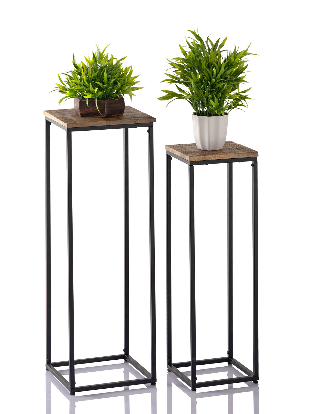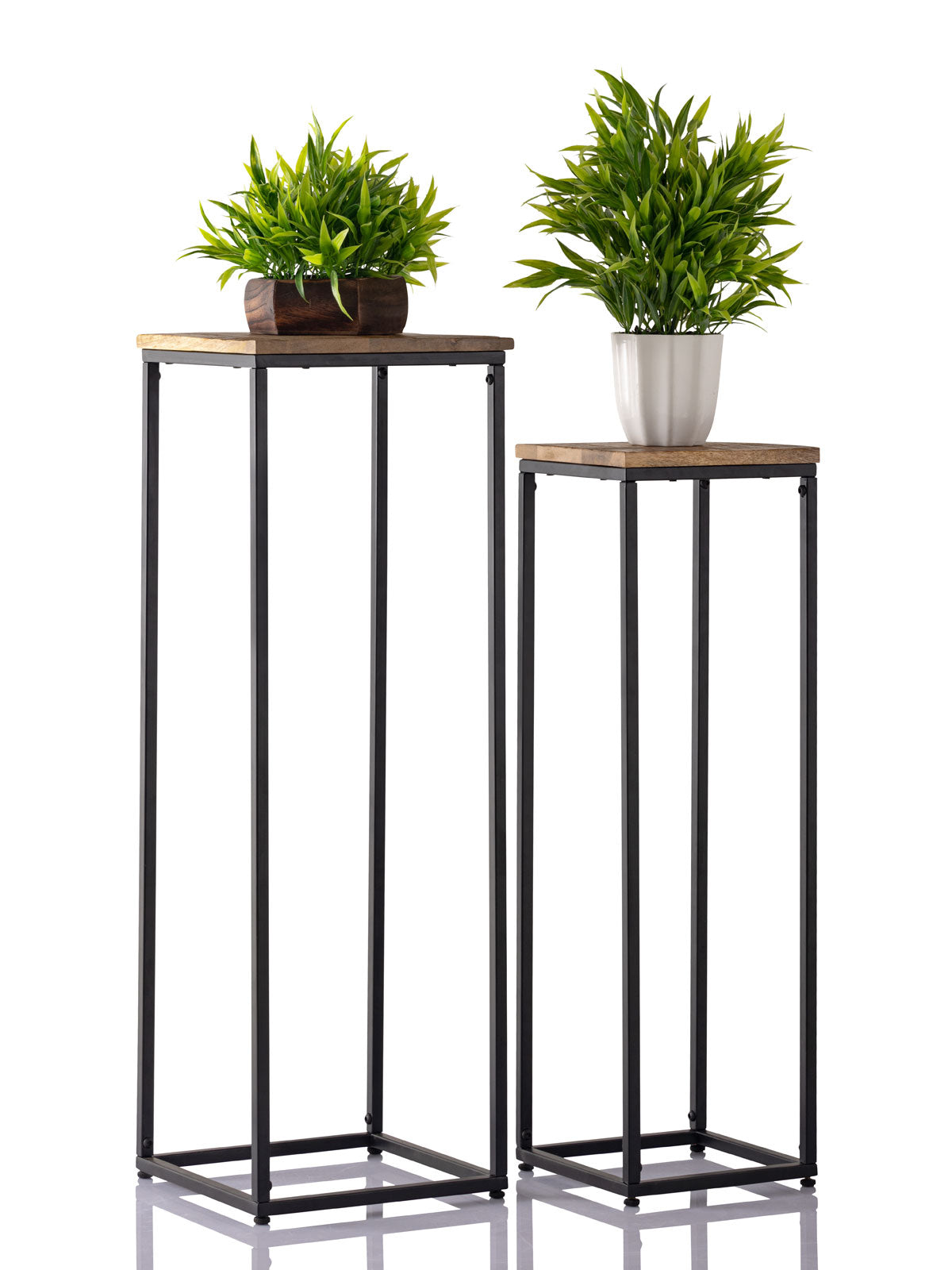 Blumensäulen Set von Hand hochwertig verarbeitet Platte aus 100% recyceltem Mango Altholz mit Säge- und Gebrauchsspuren