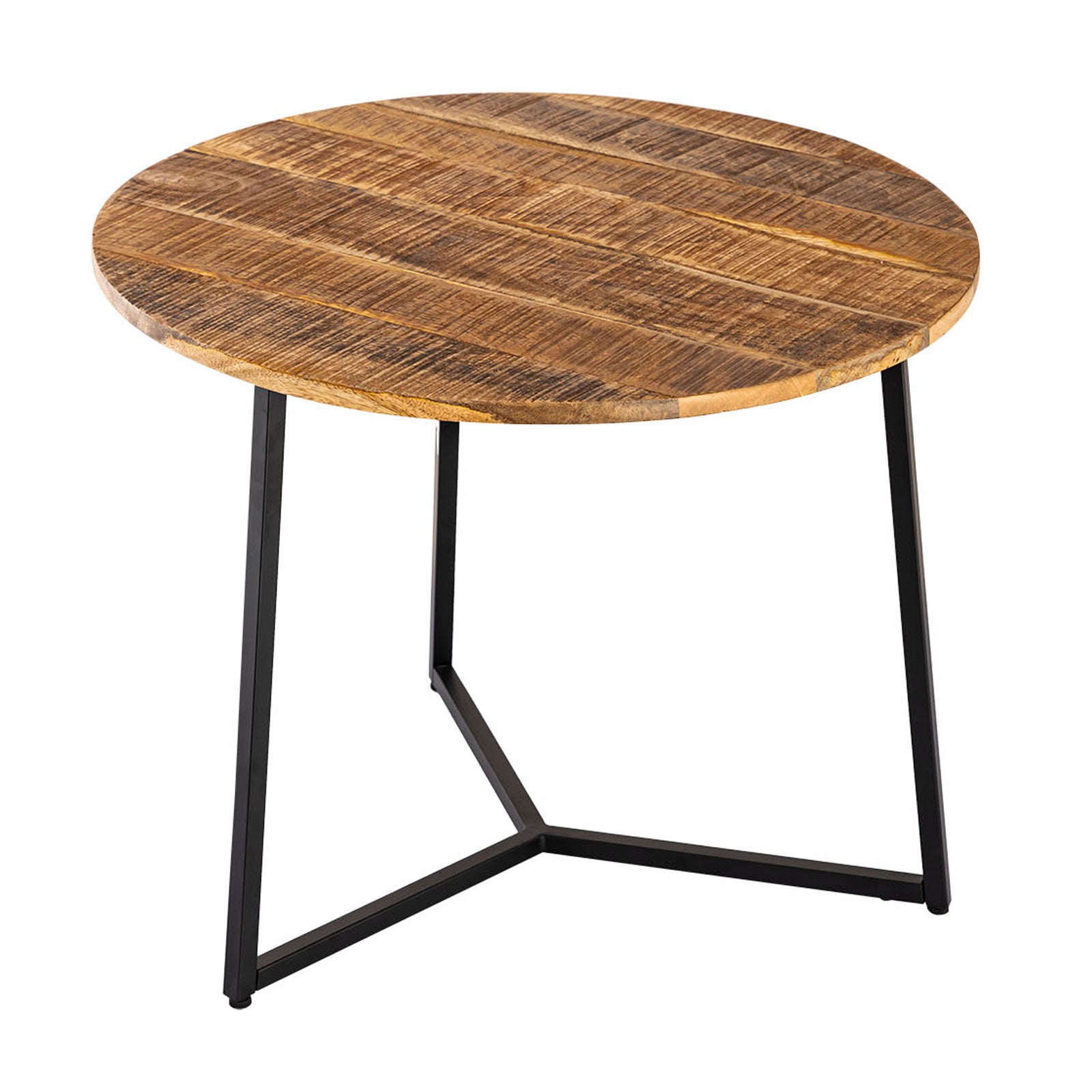 Couchtisch rund nachhaltig aus recyceltem Mango Altholz mit Metall Gestell schwarz matt (muss aufgebaut werden!)