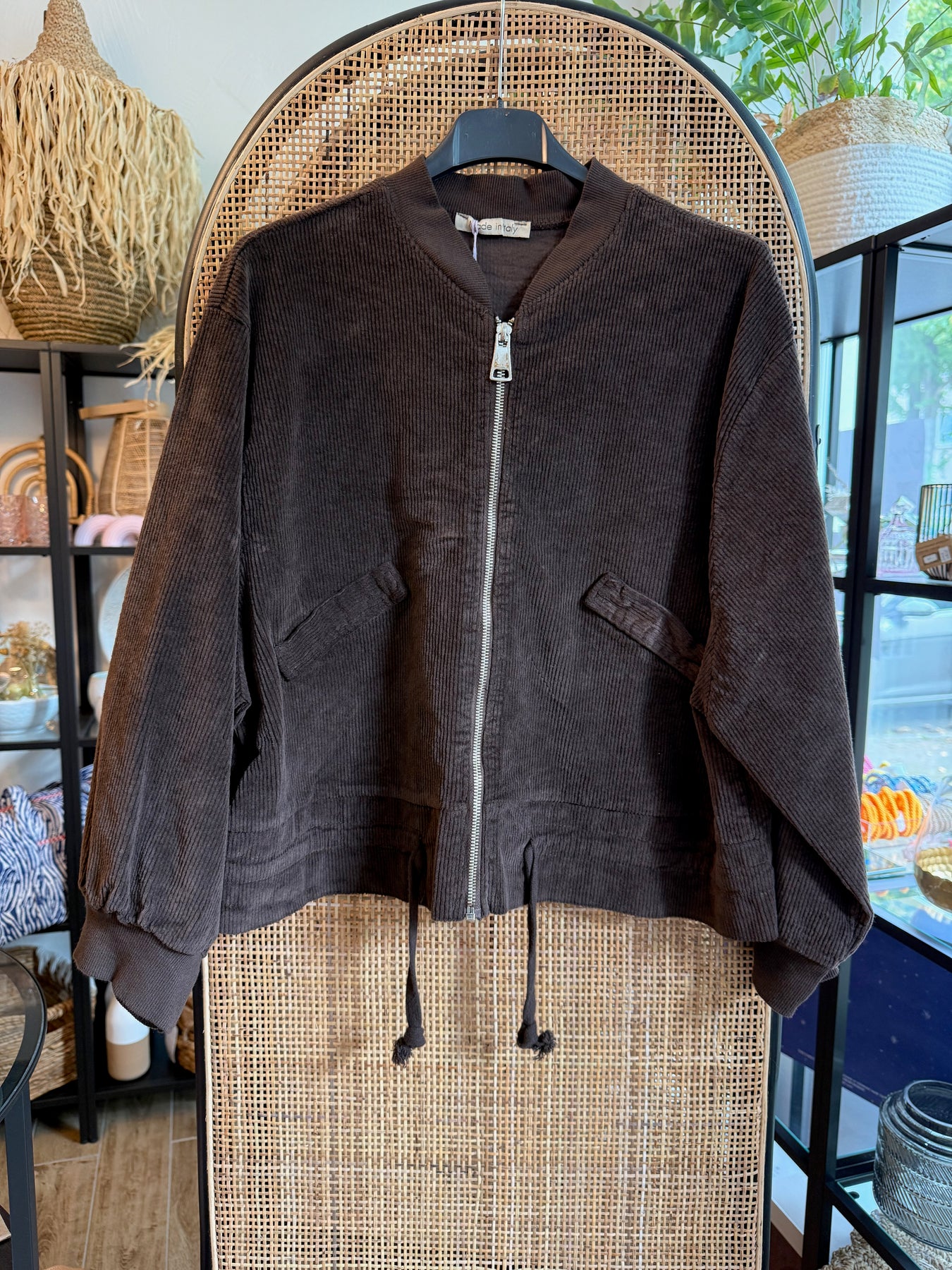 Jacke Cord Kurz dunkelbraun, Damenjacke braun, Cordjacke, Herbstjacke, Übergangsjacke, Boho Mode, Made in Italy, lockere Passform Jacke, Alltagsmode, Mode mit Gefühl