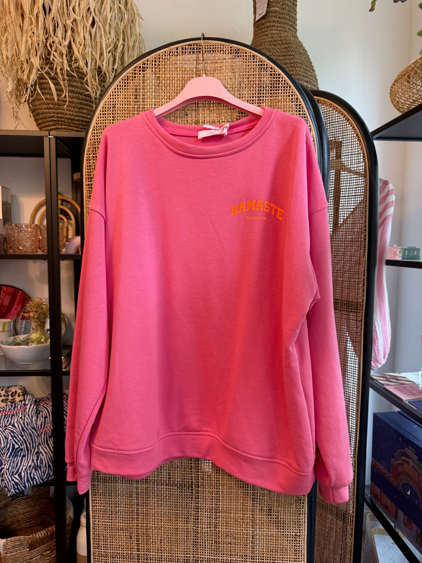 Pulli Namaste, neon Pulli, Baumwoll-Pullover, One-Size Pullover, nachhaltiger Pulli, Pulli Made in Italy, gemütlicher Sweat, Statement Pullover, Boho Mode, Sweatshirt Damen