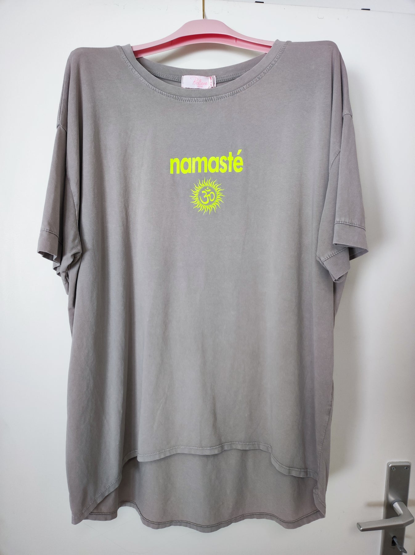 Namaste Shirt, graues Shirt, Boho Mode, nachhaltige Mode, Yoga Shirt, One-Size Shirt, Baumwollshirt, italienische Mode, minimalistisches Design, Statement Shirt