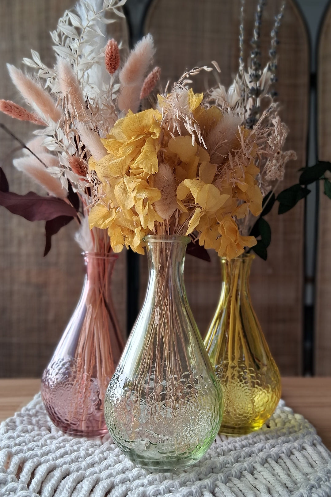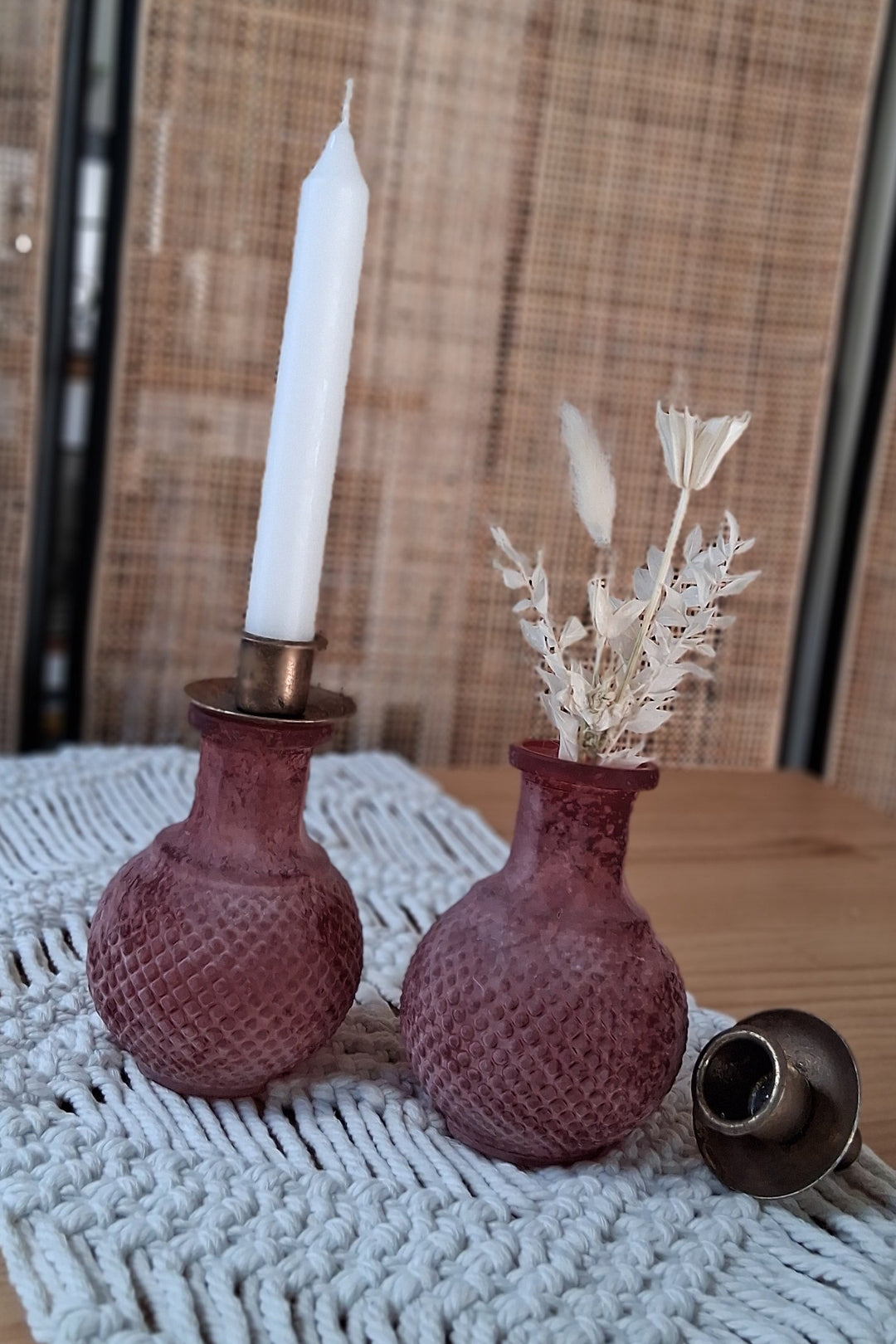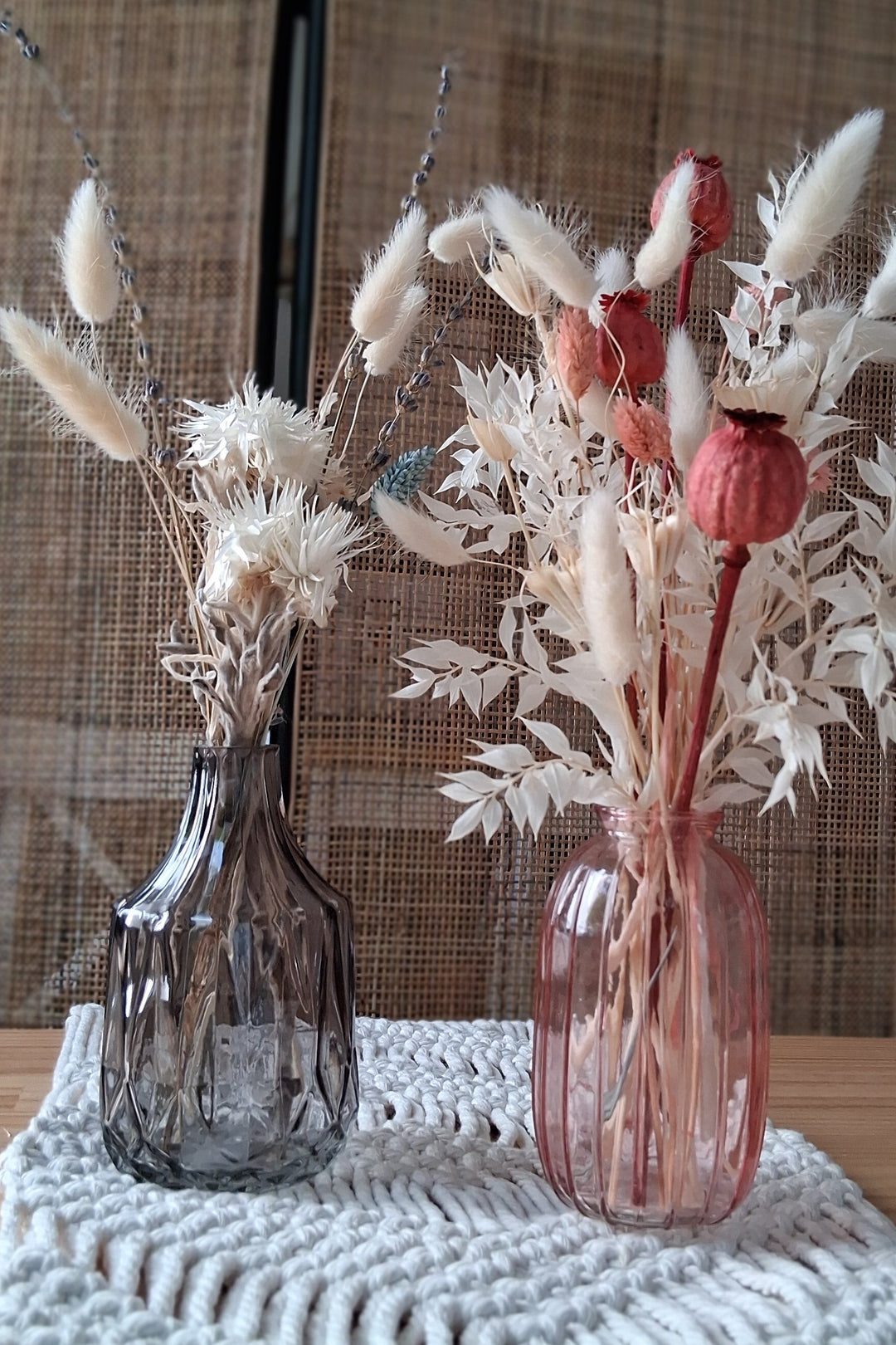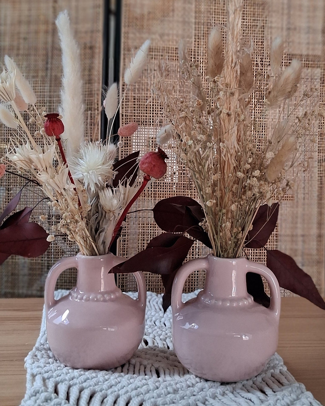 Boho Vasen, handgefertigte Töpfe, Tonvasen, Rattan Gefäße, Korbgefäße, Blumenarrangements, natürliche Akzente, Blumentopf, Pflanztopf