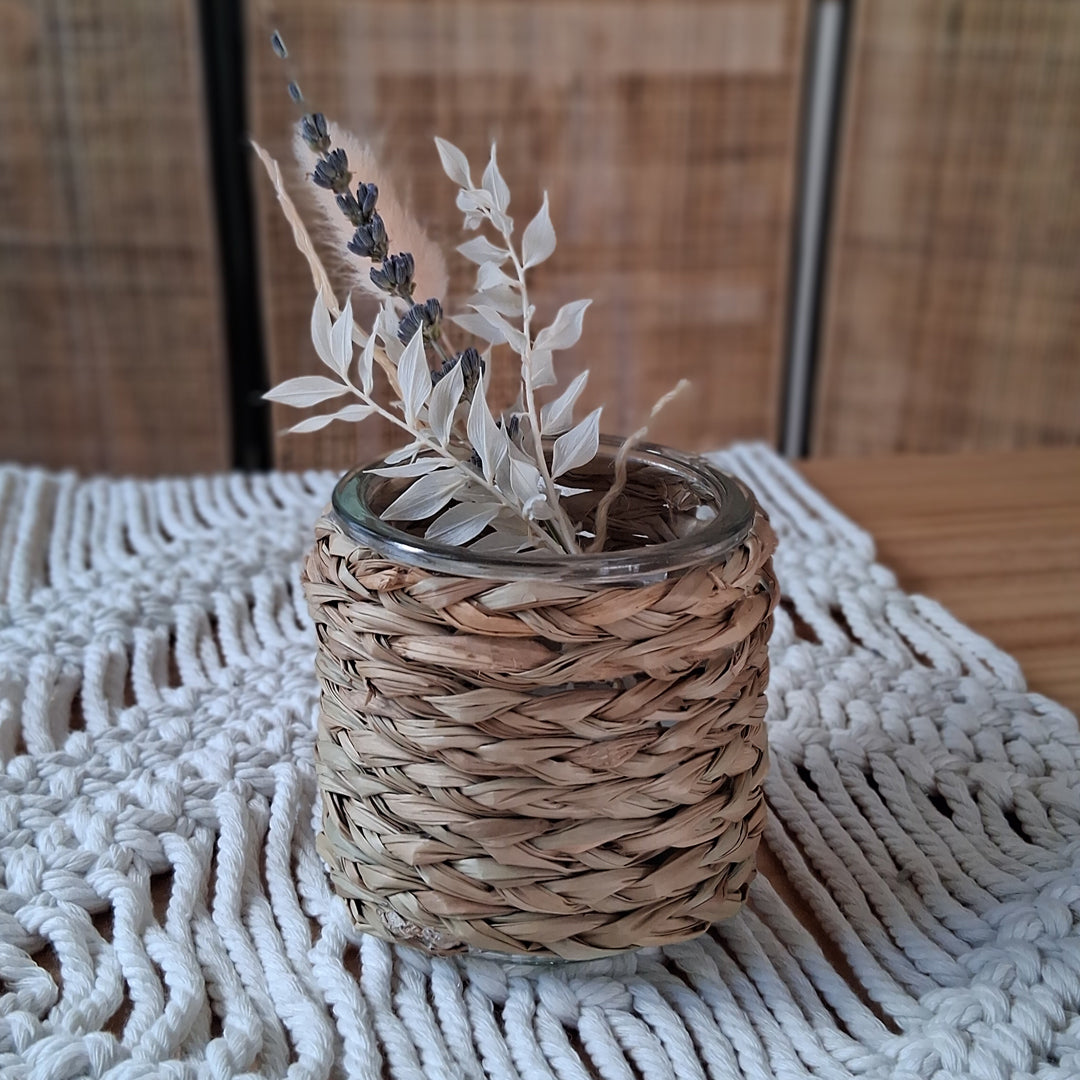 Windlicht Glas Bast, Kerzenglas mit Bast, Windlicht natürlich Deko, Glas Windlicht Boho, Kerzenhalter Glas Bastgriff, Pflanzglas Deko natürlich, Windlicht Balkon Terrasse, Glasgefäß Kerze Pflanze, Bast Deko Glas modern, Boho Windlicht Glas, Windlicht mit Naturmaterialien, Glas Windlicht Outdoor Indoor, Tischdeko Windlicht modern, nachhaltige Deko Glas, Deko Glasgefäß vielseitig, Windlicht mit Griff Bast, Interior Deko Natur Stil, modernes Windlicht